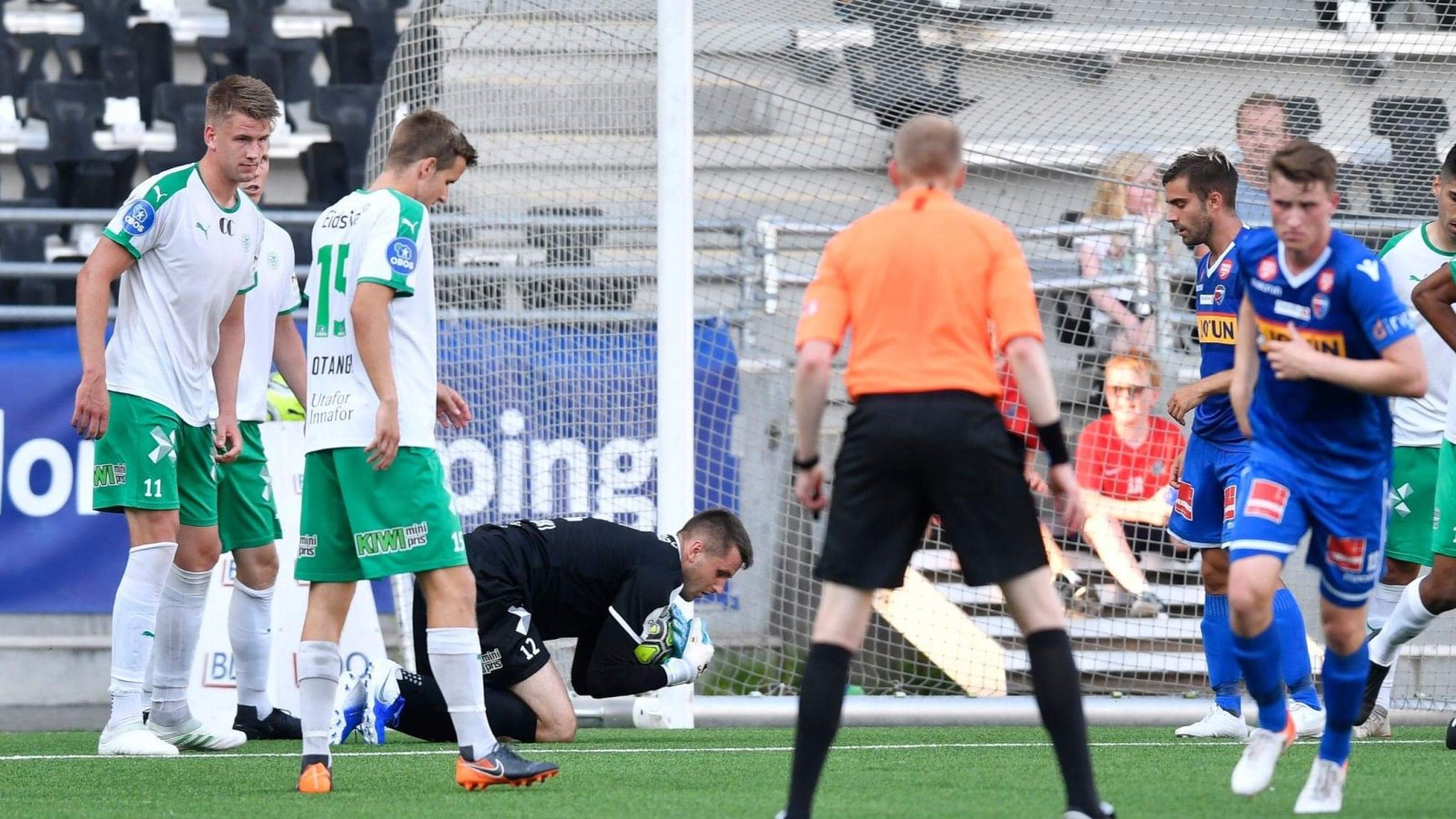 Hjemmelaget startet kampen best og styrte det meste den første halve timen. Engblom var nære når han kom til skudd fra 14 meter kvarteret ut i kampen, men toppscoreren satte ballen over. Ofkir var et konsant uroment på sin høyrekant og skapte trøbbel ved flere anledninger, men uten at det ble farlig.