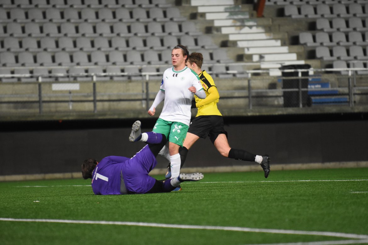 HamKam-rekruttene spiller seg til et par solide målsjanser utover i andre omgangen uten å få noen uttelling i siste halvdel. Når Ottestad heller ikke makter å få ballen forbi Jarosinski ender det med 2-0 seier til hjemmelaget og tar tre poeng før siste serierunden kommende helg.