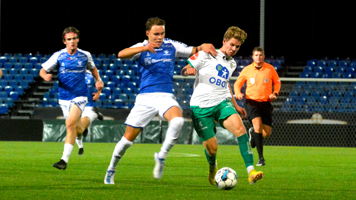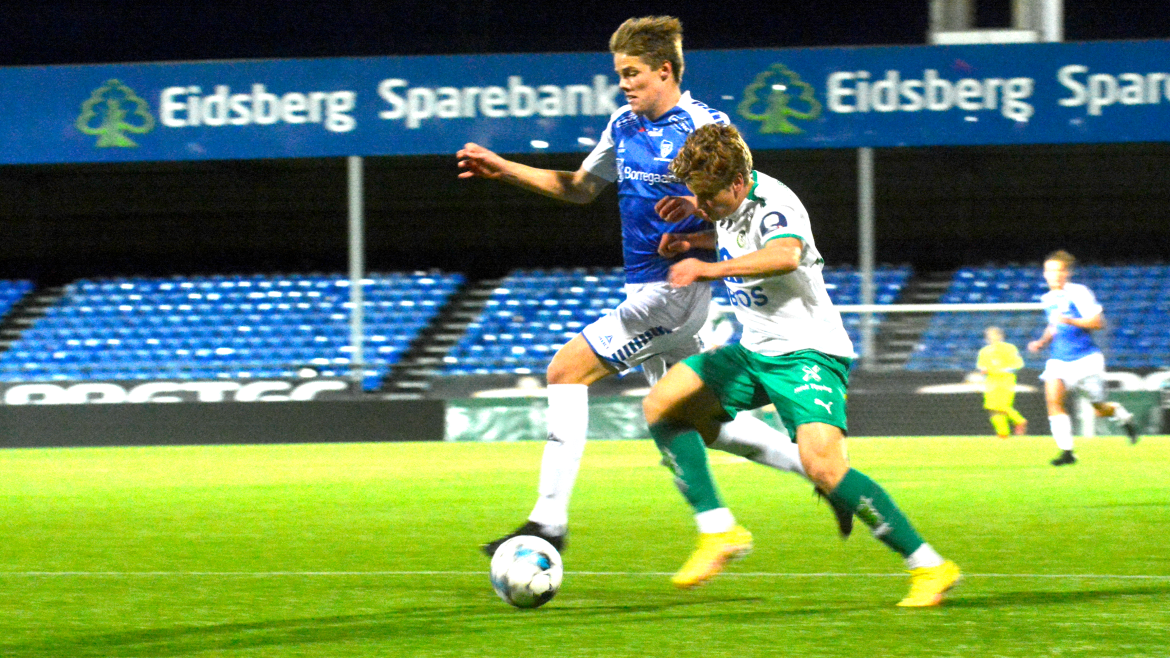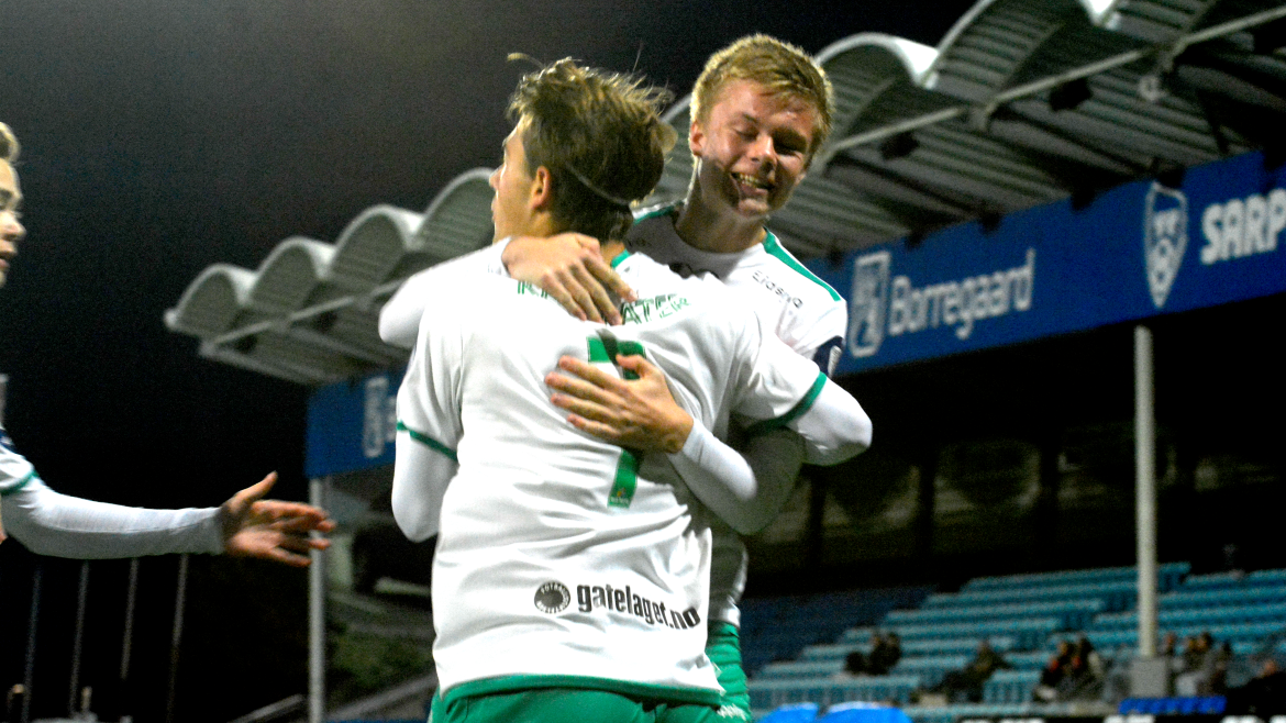 Ti minutter før pause får Jonas Rasen skutt ballen i mål etter klabb og babb inne i Sarpsborg-feltet. Godt forarbeid av Kristian Nordbye og Jesper Heggelund sørget for en enkel jobb for tomålscoreren.