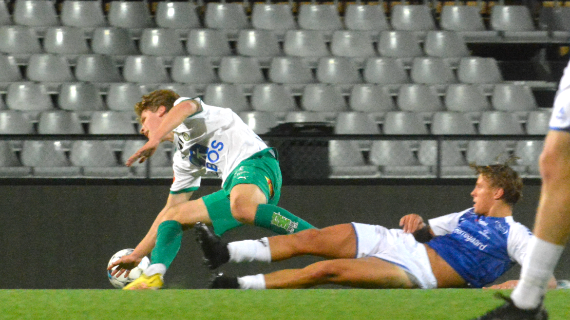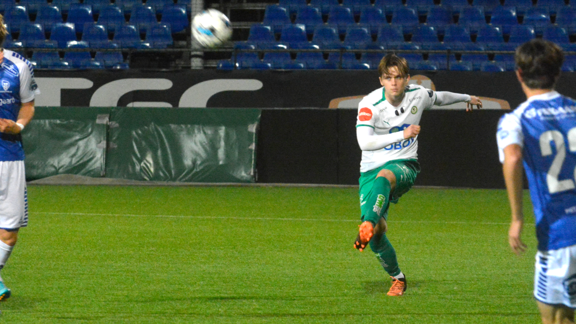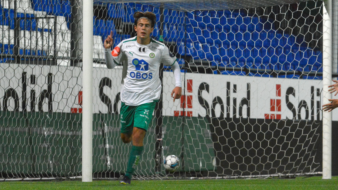 Tre minutter senere var det spisskollega Emil Øverby sin tur. Målet er ikke helt ulikt Jonas sitt. Emil vinner sin duell med Sarpsborg-stopperen. Inn i seksten og skyter en markkryper med høyrefoten. Prikkskyting av spissene fra Hamar.