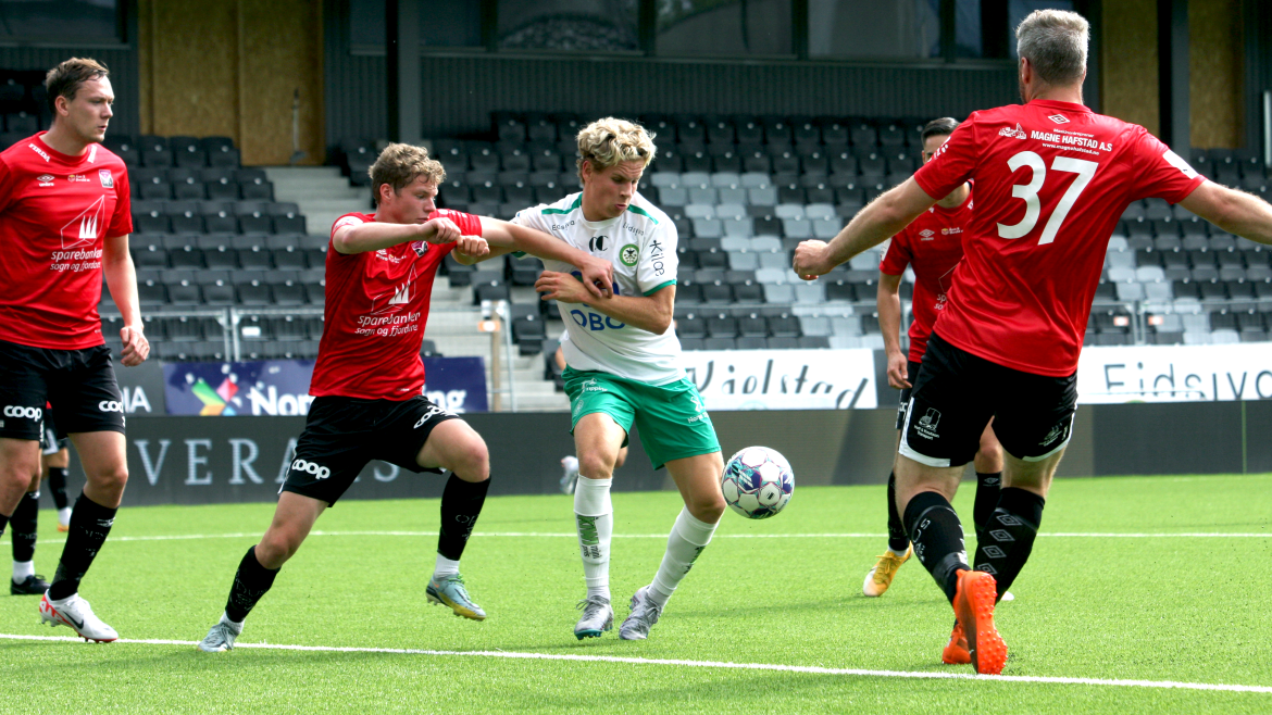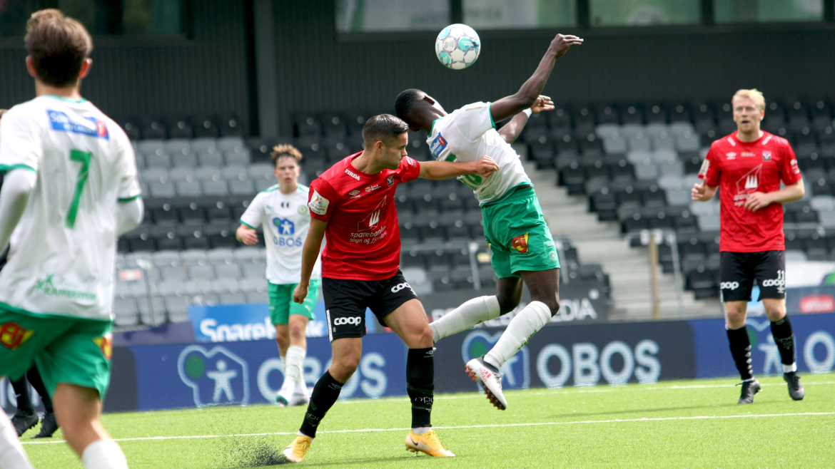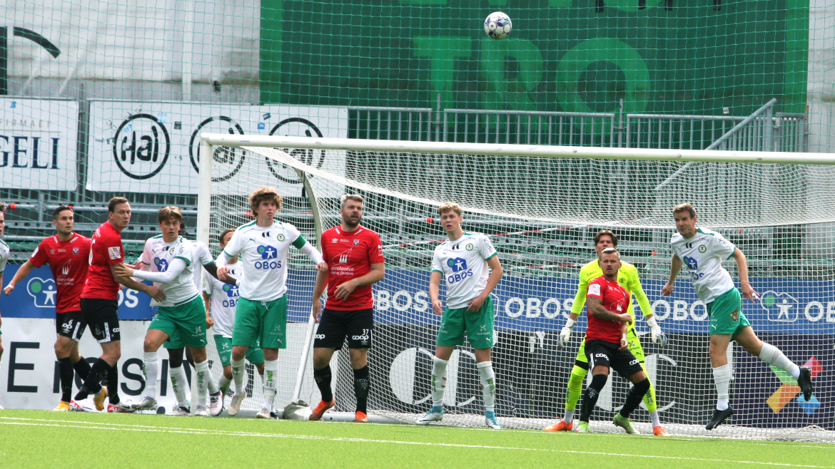 Etter en litt treg start for hjemmelaget tar grønnbuksene mer kontroll over kampen, og skapte noen farligheter ved Emil Øverby, Jonas Rasen og Romeo Olola før de fikk fortjent nettsus rett før pause.