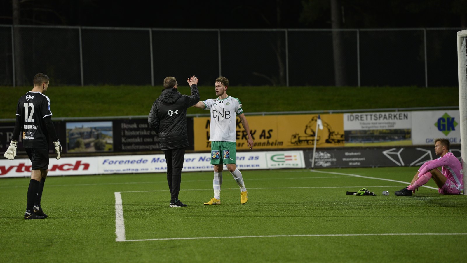 10: Ivar Solle Rønning er alene gjennom med keeper, men vinkes av for offside. Avslutningen gikk uansett utenfor fra trønderen.
