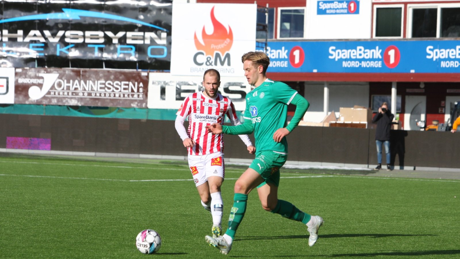 Kampens første scoring kom etter 35 minutter. Moses Mawa var arkitekten da han mottok ballen fra Kongsro langt inne på egen halvdel, spilte vegg og startet et flott offensivt løp. Oslo-gutten løp fra alt og alle og fikk igjen ballen alene med Tromsøs keeper før han uegoistisk serverte Snorre Strand Nilsen som fikk en enkel jobb med å sette inn det første målet.