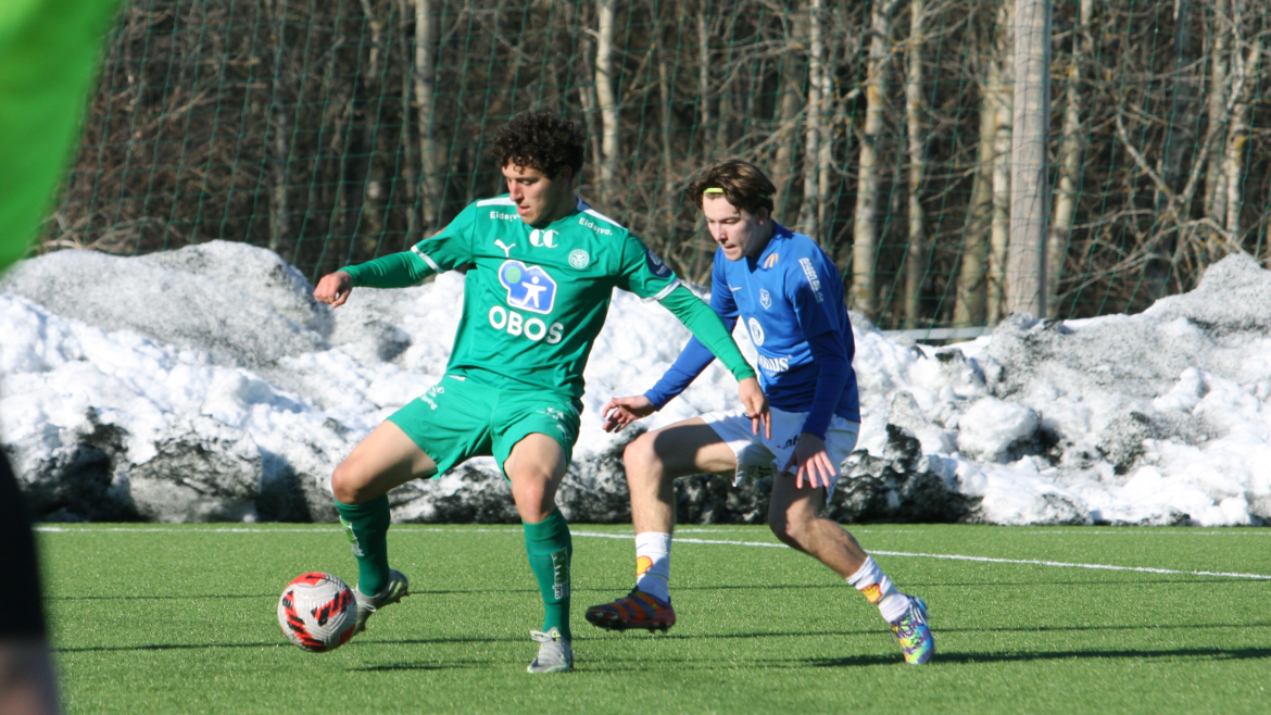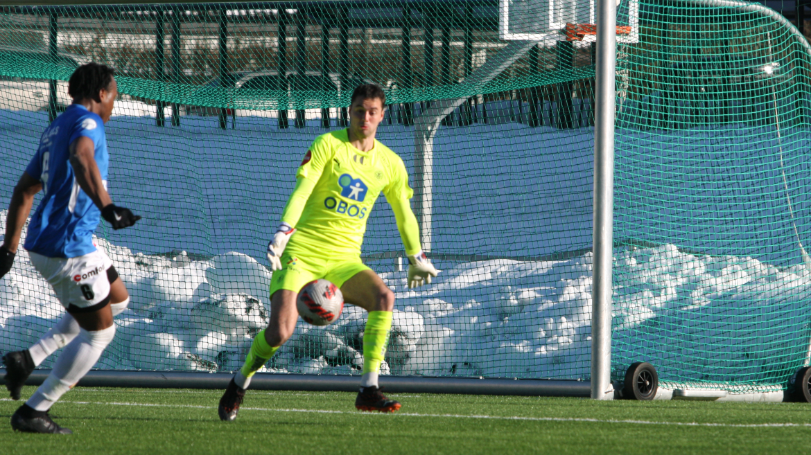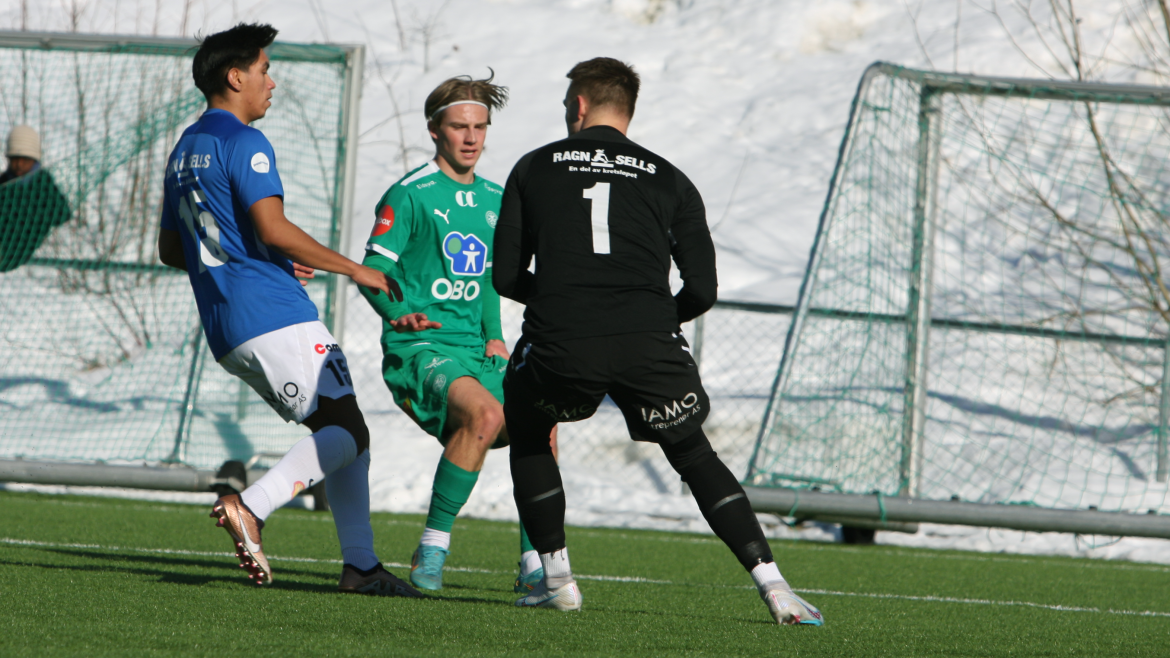 To minutter før slutt blir Julian Gonstad spilt flott gjennom alene med keeper. Unggutten fra Skreia er kald alene med keeper og triller ballen i nærmeste hjørnet.