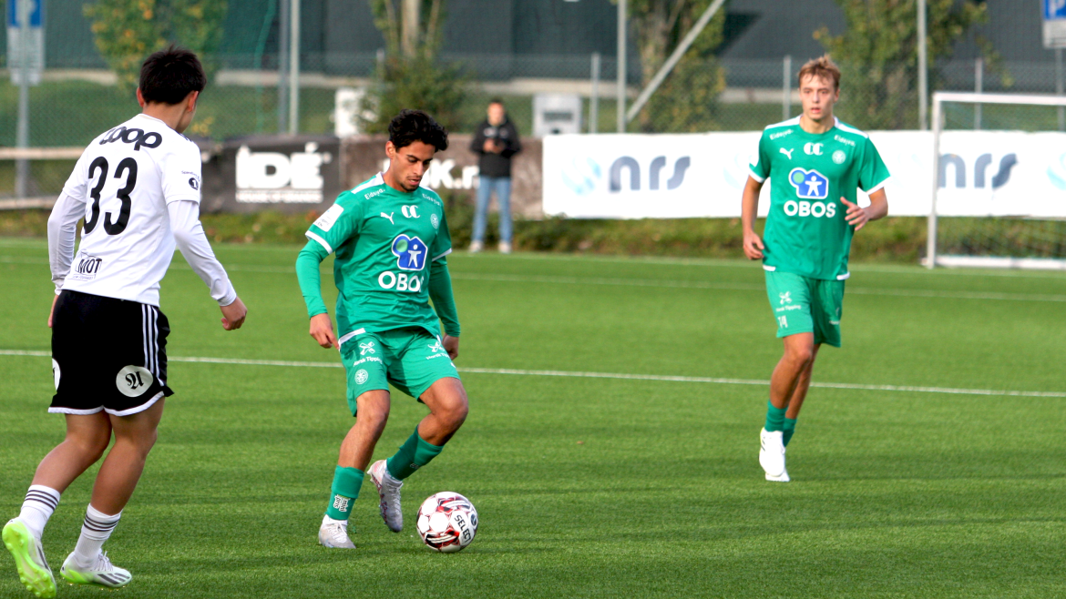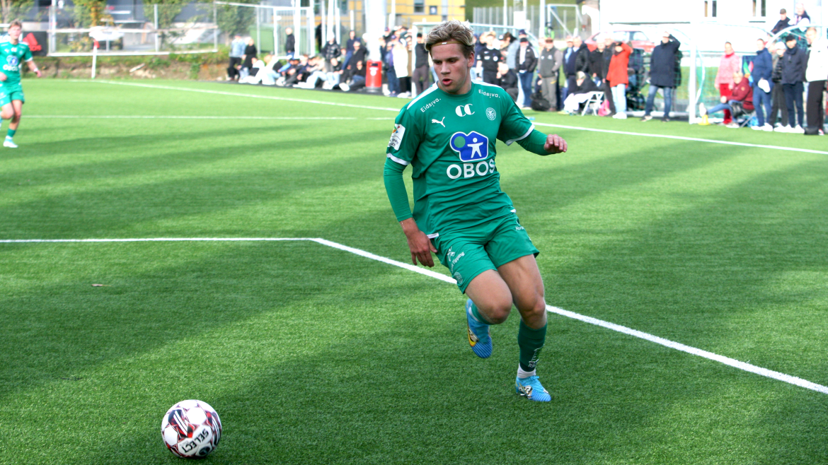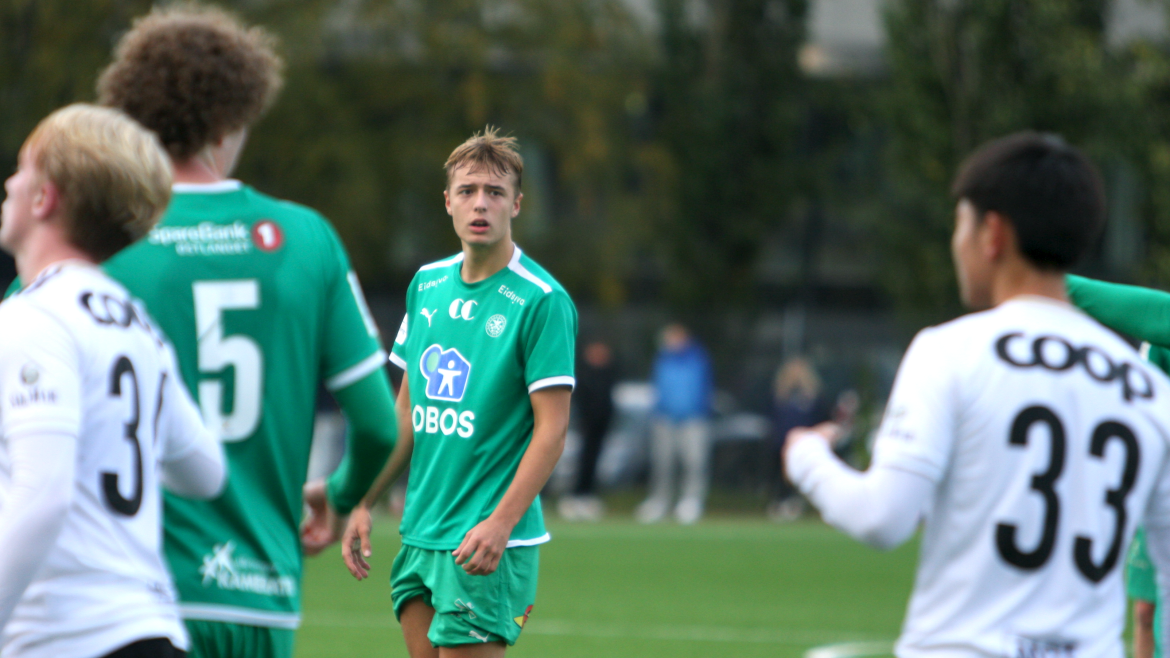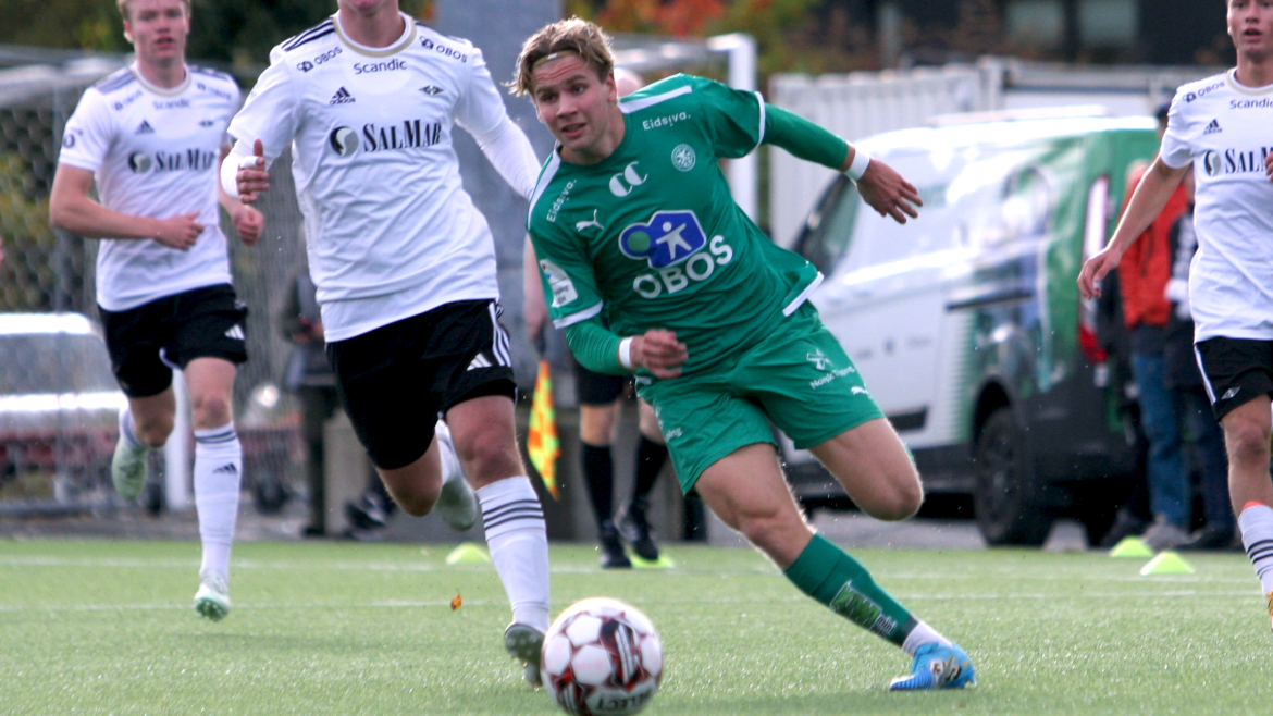 Leo Haug Utkilen hadde også en skuddmulighet etter litt klabb og babb etter dødball. Skuddet til den unge midtbanespilleren ble blokket av en RBK-forsvarer.