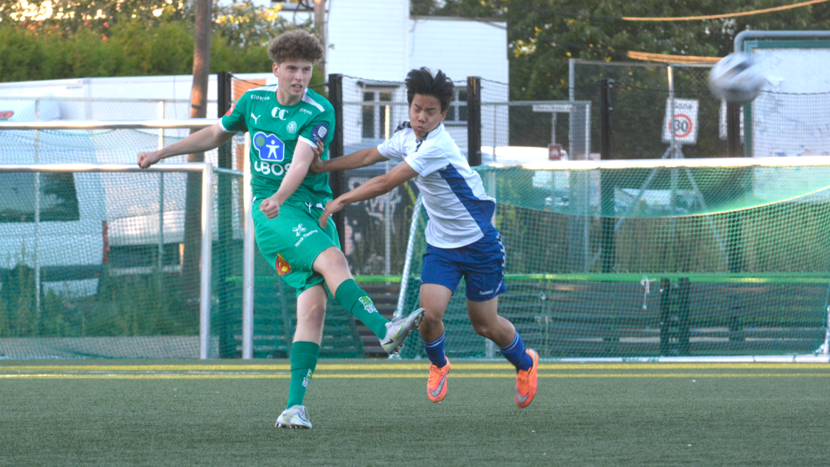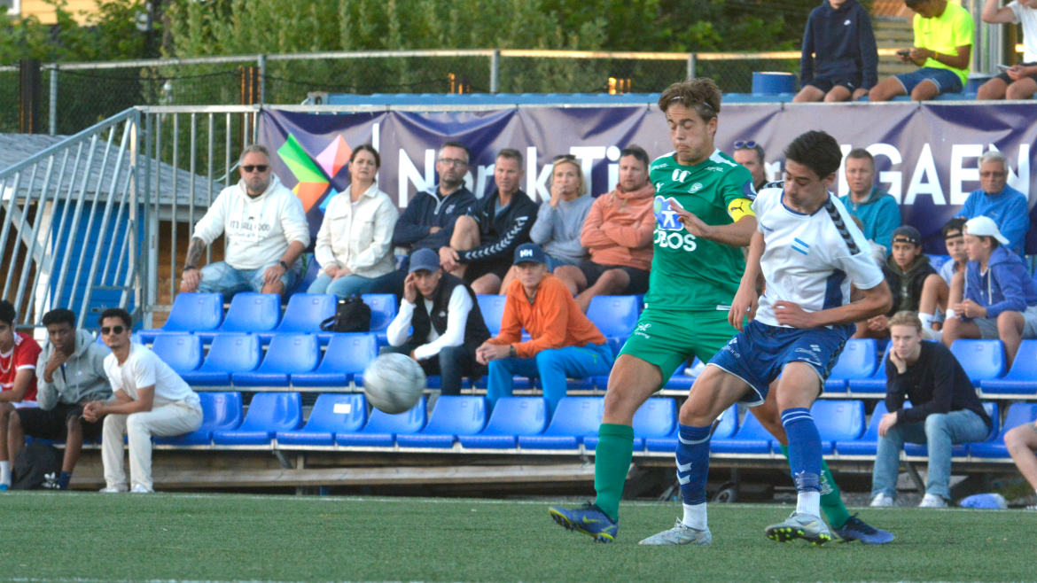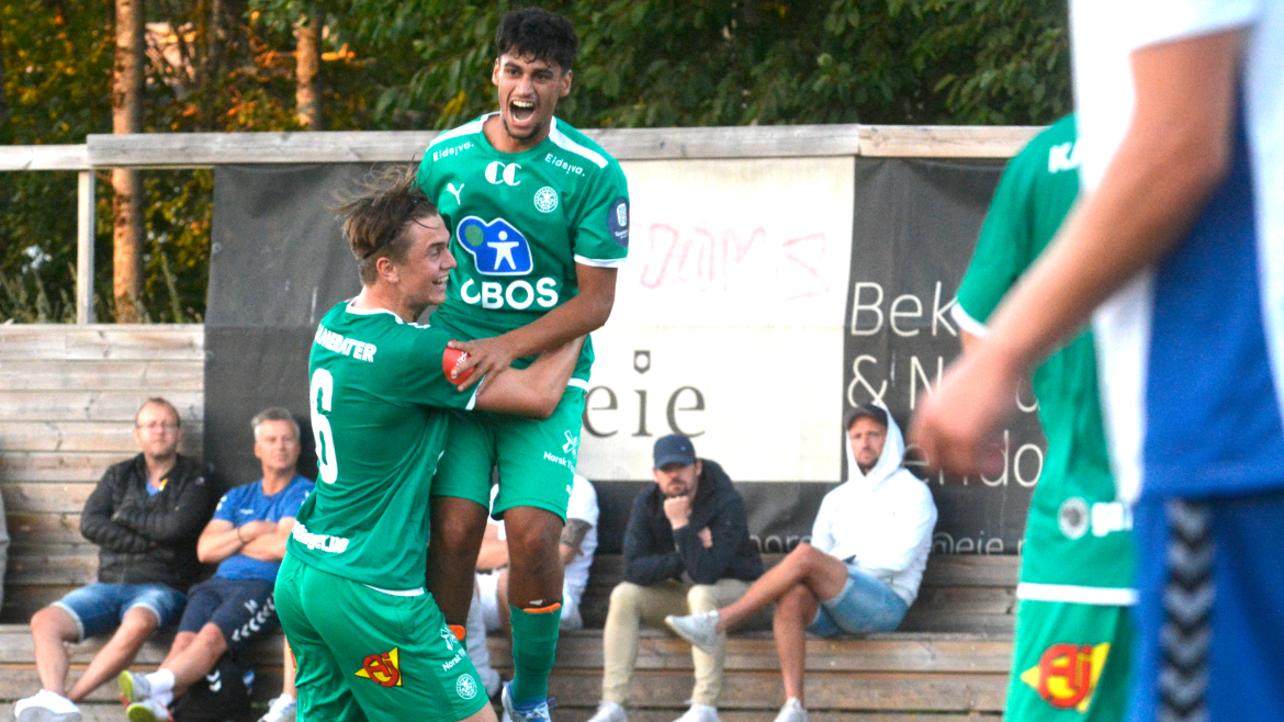 Kampen går mot slutten. Man tenker kanskje at uavgjort er et greit resultat når man har hatt en omgang hver. Men Emil Stenberg Øien ville det annerledes. Unggutten som kom fra Lillehammer i sommer og er storebroren til Oskar Stenberg Øien som han erstattet tidligere i andre omgang. Han mottar ballen utenfor sekstenmeteren og fyrer av. Ballen går i en fin bue over keeper og i mål til stor jubel fra de grønnkledde gjestene.