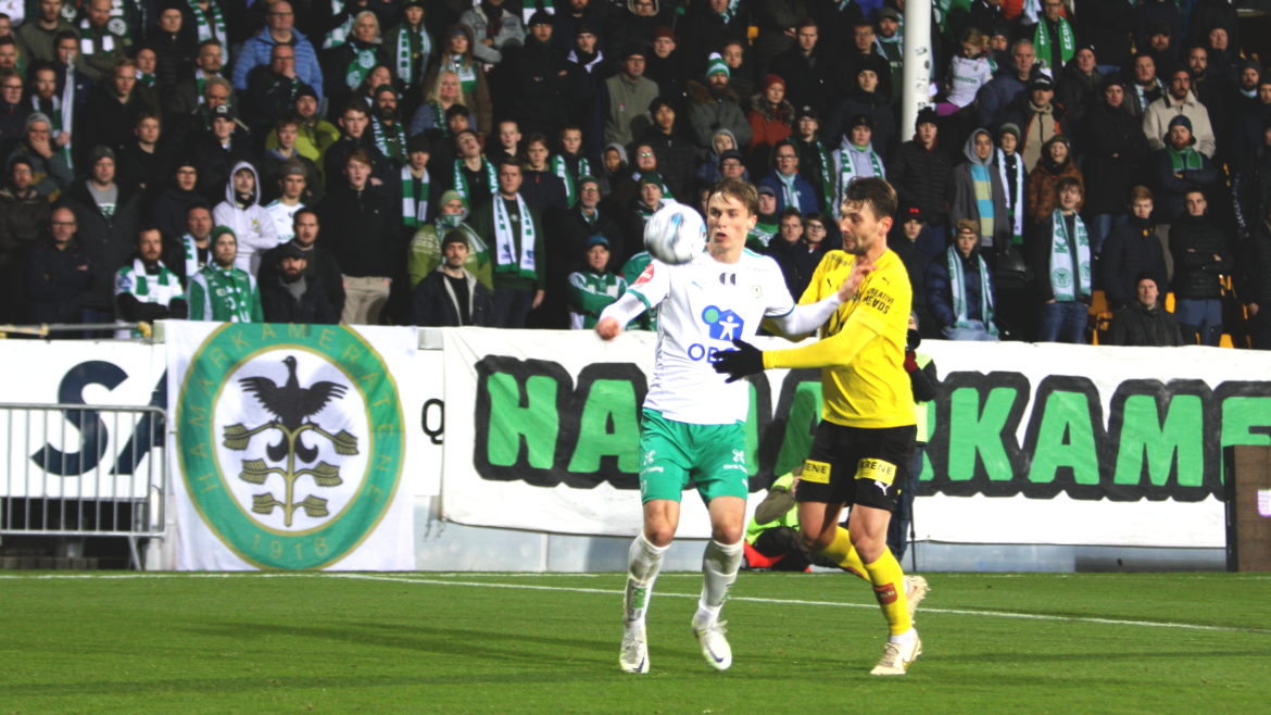 HamKam startet oppgjøret på Åråsen bra, og det var langt fra ufortjent da Kristian Lønstad Onsrud smelte inn kveldens første mål. Et fantastisk angrep ble avsluttet av Gjøvik-gutten. Aleksander Melgalvis slår et hardt og flatt innlegg fra høyresiden, Marcus Pedersen legger ballen ut til Onsrud som klemmer til med venstrefoten. Rett i nettet.