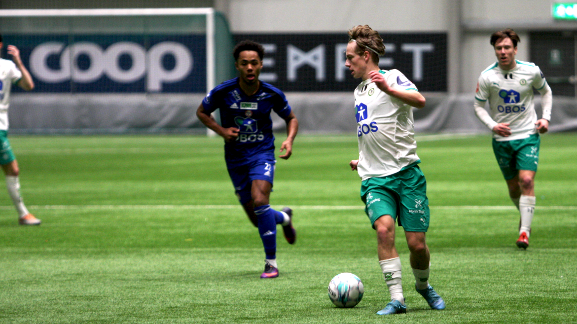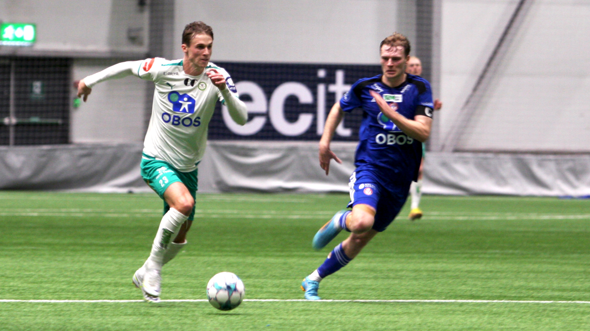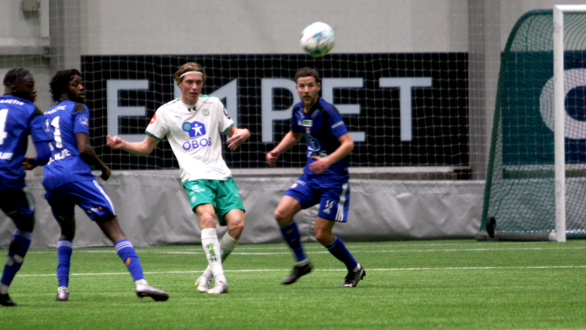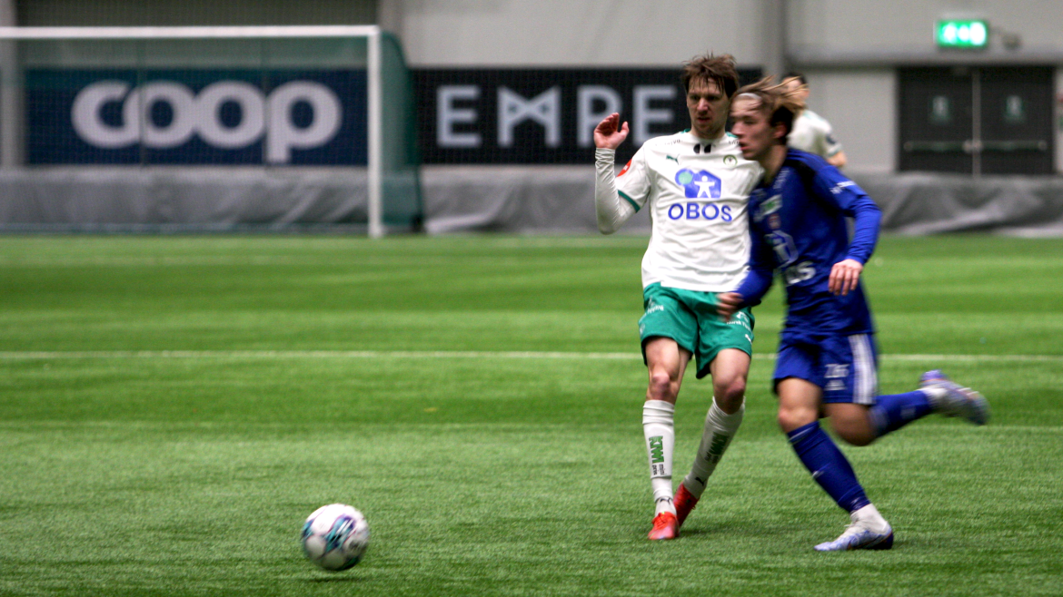 HamKam hadde mye ball i første omgang, men uten å skape noen særlig gode muligheter på KFUM-målvakt, Andreas Vedeler.
