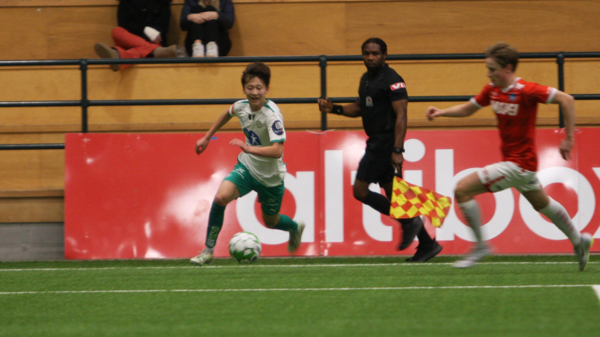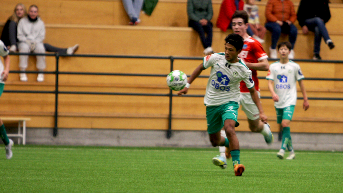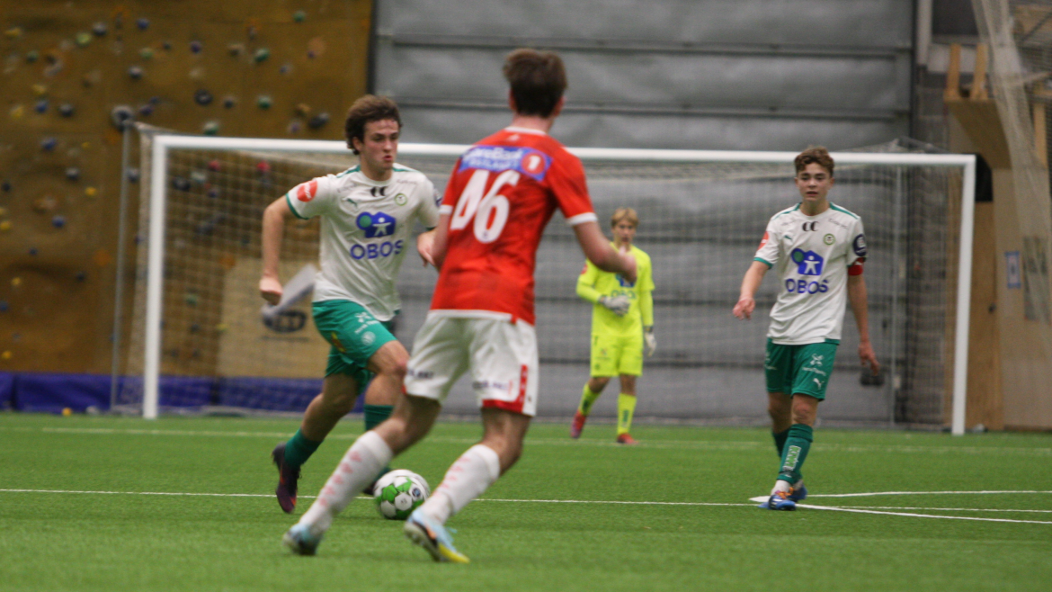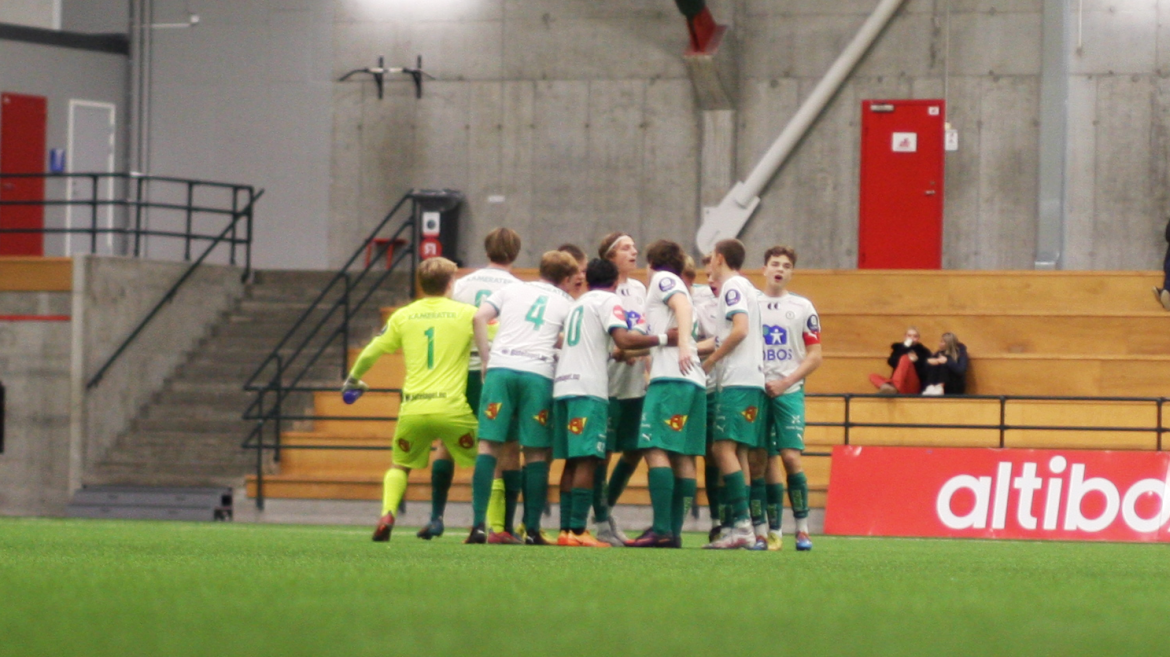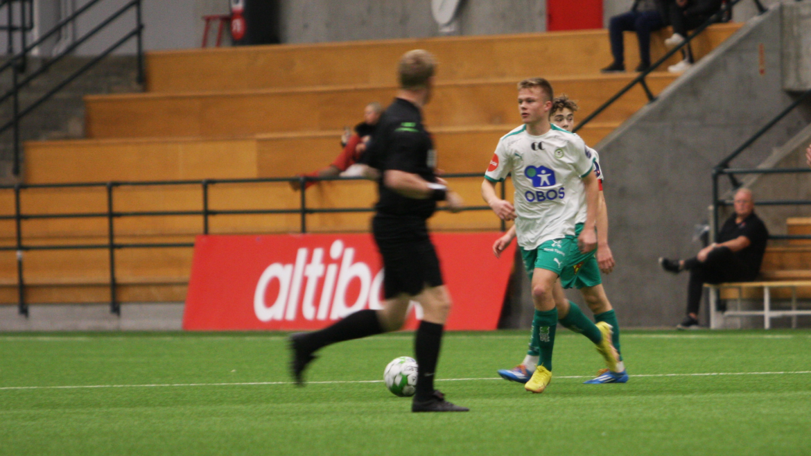 HamKam-juniorene skaper de to største sjansene i første omgang, begge ved Emil Øverby. Først er han alene med keeper, men vippen over keeper ble for høy og ballen landet bak mål. På mulighet nummer to klarer han å få med seg ballen forbi keeper, dessverre for ungguttene får han ikke kontroll på ballen etterpå og ballen triller ut til femmeter.