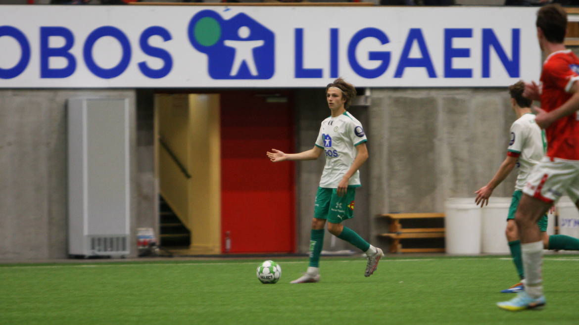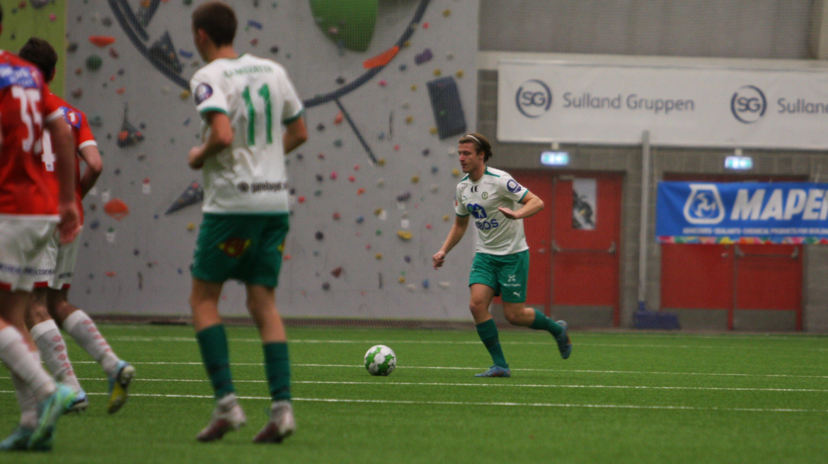 Andre omgang er ti minutter gammel da høyrekantene til hjemmelaget kommer seg fri på høyresiden, slår inn langs bakken. På bakerste stolpe får Marius Øien Damhaug en grei jobb med å sende hjemmelaget i føringen.