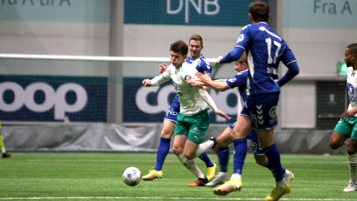 Men etter 40 minutter åpner Kristian Lønstad Onsrud årets målkonto på vakkert vis. Et oppspill vinnes av Henrik Udahl, før Tore Sørås finner Lønstad Onsrud på løp gjennom på lekkert vis. Gjøvik-gutten er iskald alene med keeper og setter ballen i mål under årets første kamp for hans del.