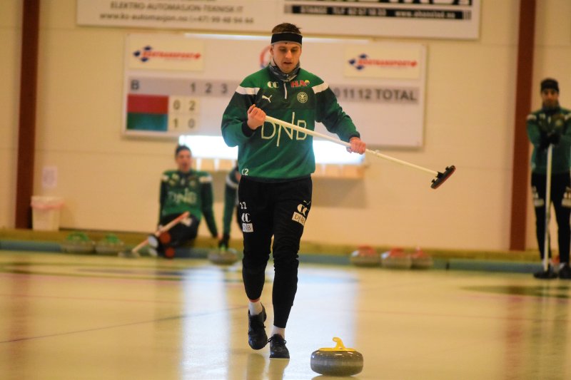 Trener Kevin Knappen tok med gutta til Stange for å teste dem på Curling.