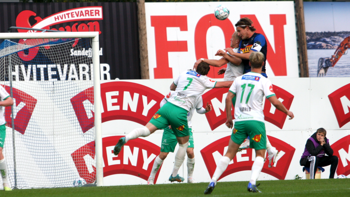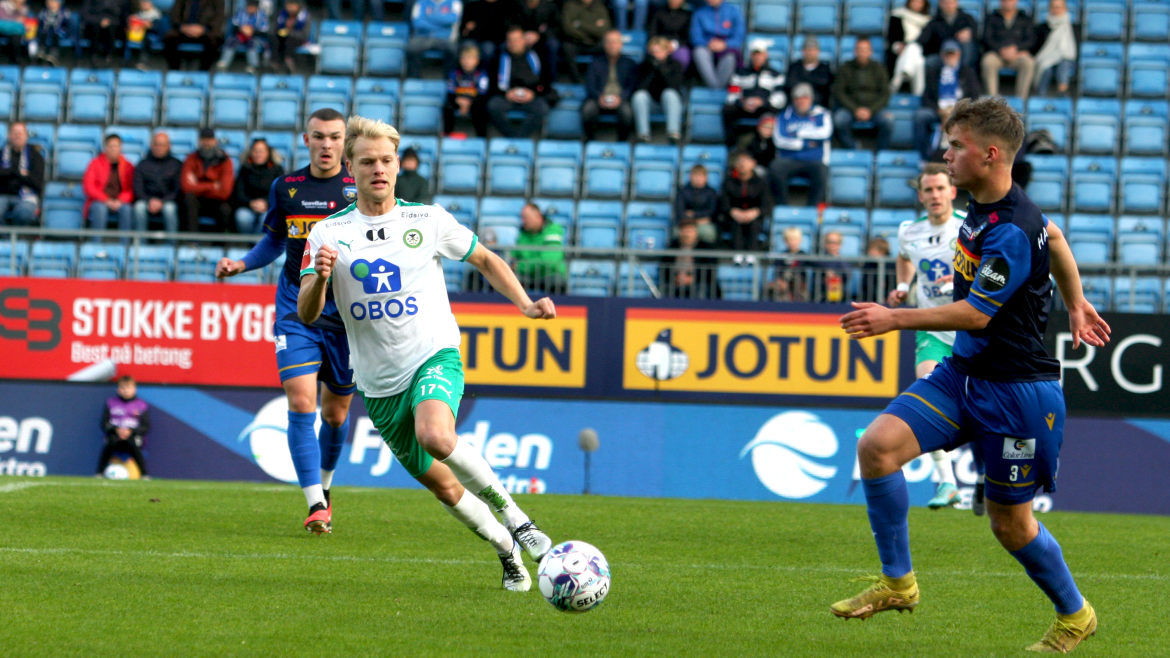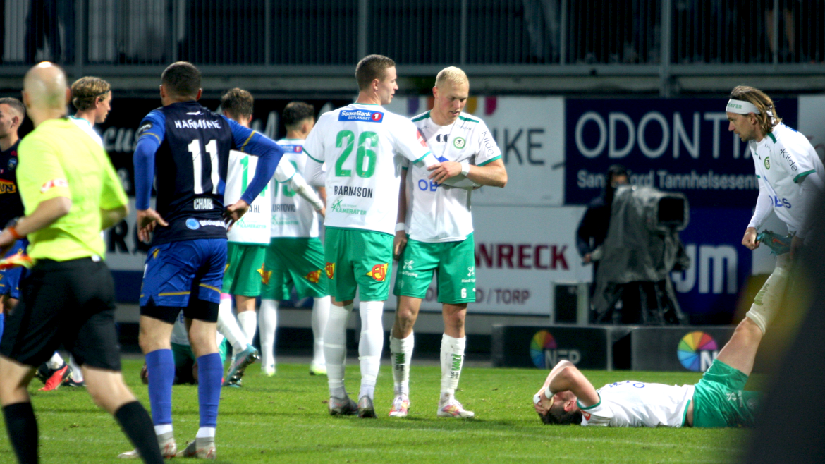 Det starter nervøst og forsiktig i Sandefjord på Jotun Arena. Det er det ballsikre hjemmelaget som eier ballen mest, uten å få de altfor store sjansene.