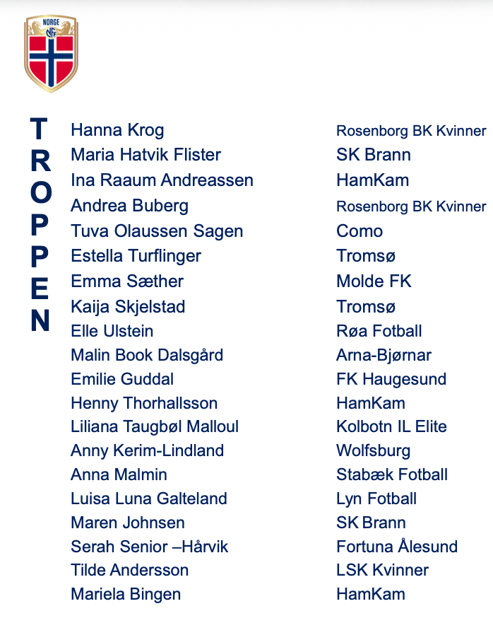Landslagstrener Lena Tyriberget har tatt ut i troppen som skal spille firenasjoners turnering i Pinatar, Spania. De skal møte Tyskland og Belgia.