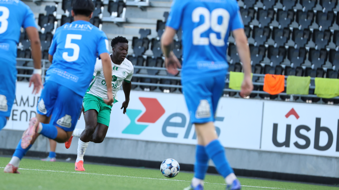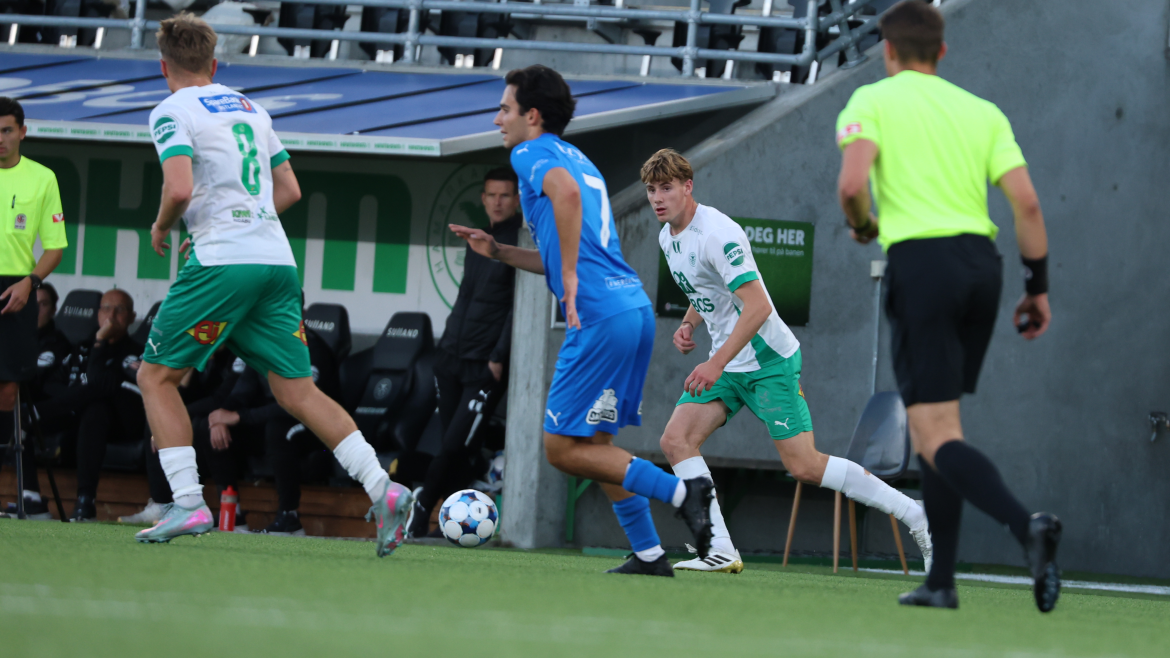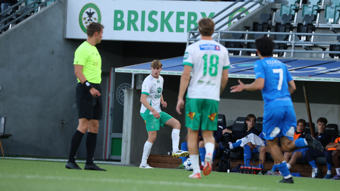 Men etter nitten spilleminutter kommer Henrik Udahl alene med keeper. Spissen er iskald og runder keeper før han triller ballen i det tomme Nordstrand-buret, og grønnbuksene ledet fortjent 1-0 like før kampuret bikket 20 minutter på Briskeby.