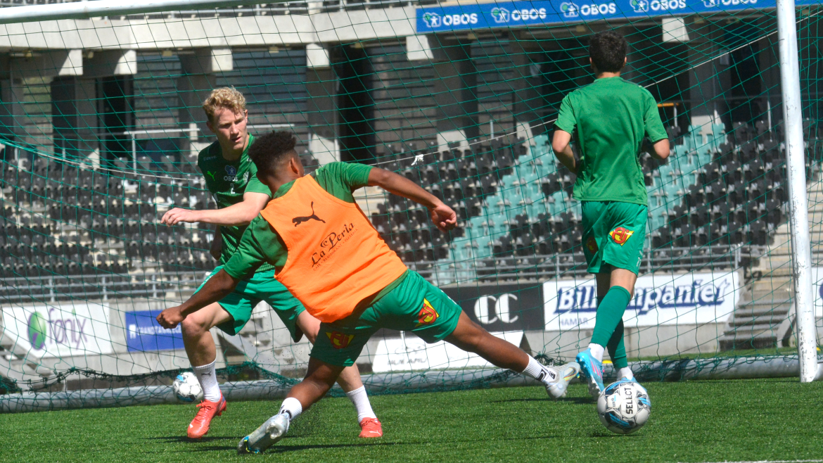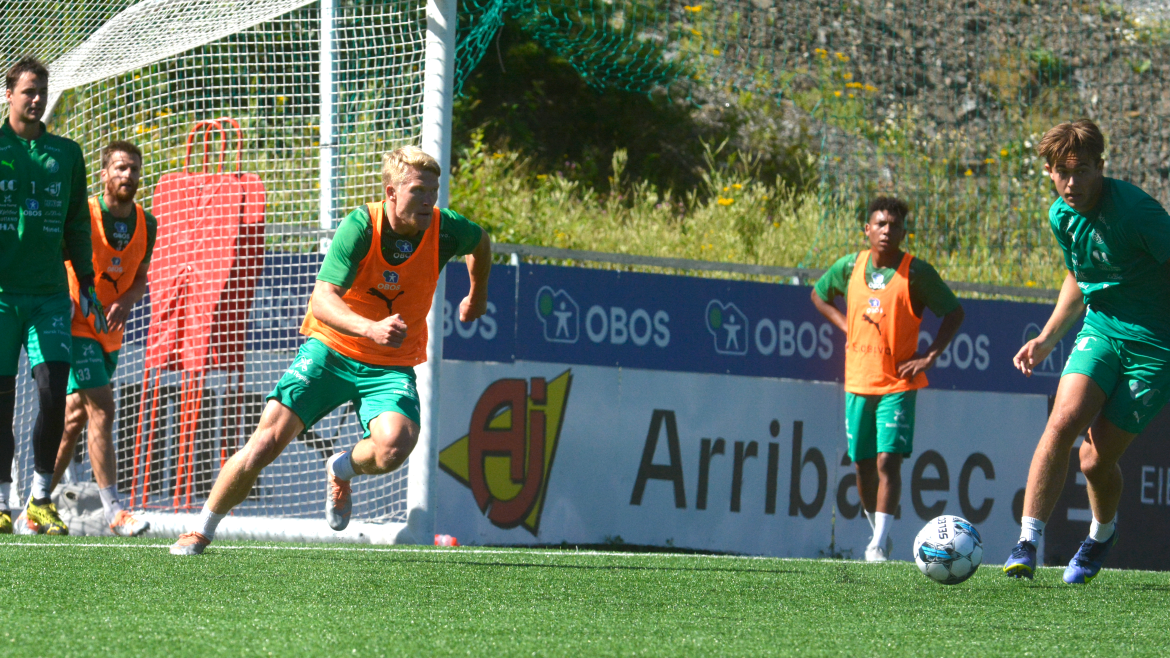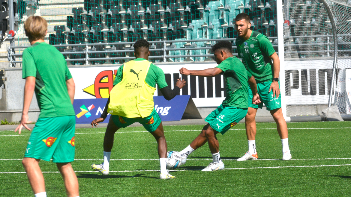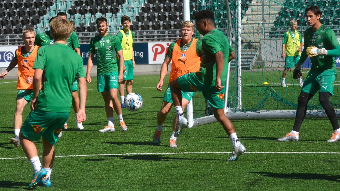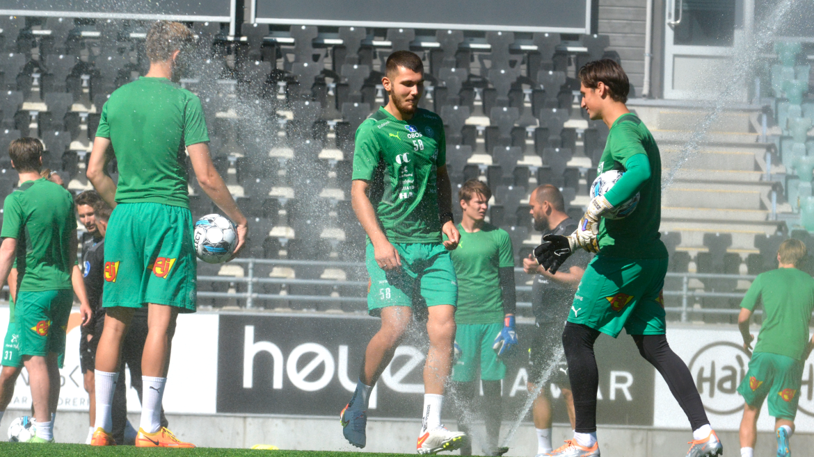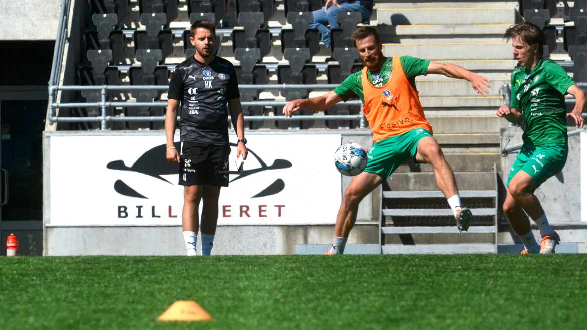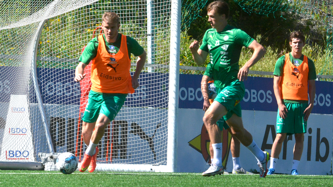 BILDEGALLERI: Gutta koste seg i solskinnet på Briskeby og la ned en god dose innsats på kunstgresset i dag. På lørdag klokken 18.00 står KBK på andre siden: Herrelaget