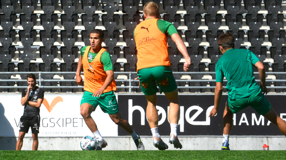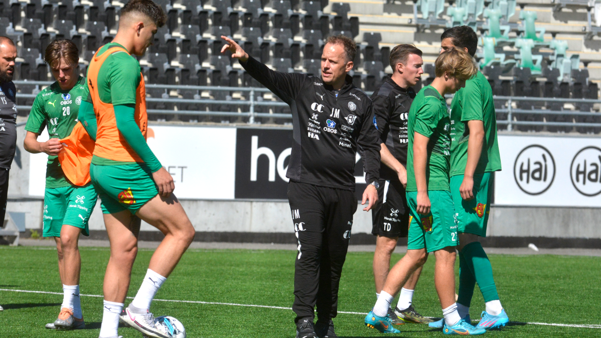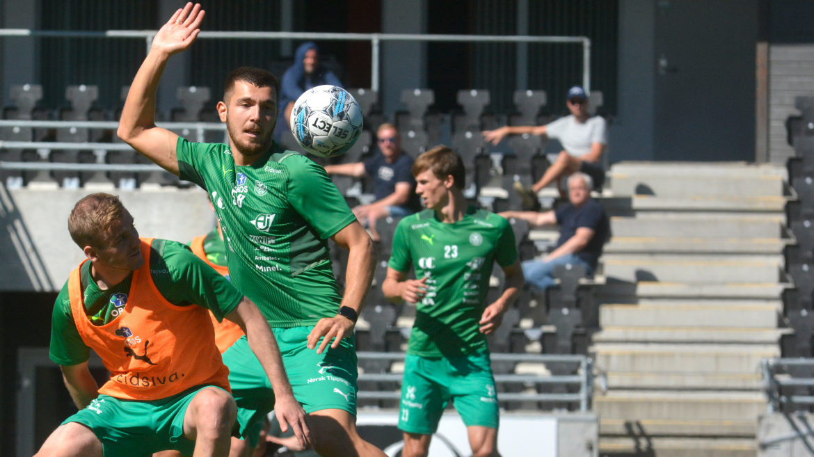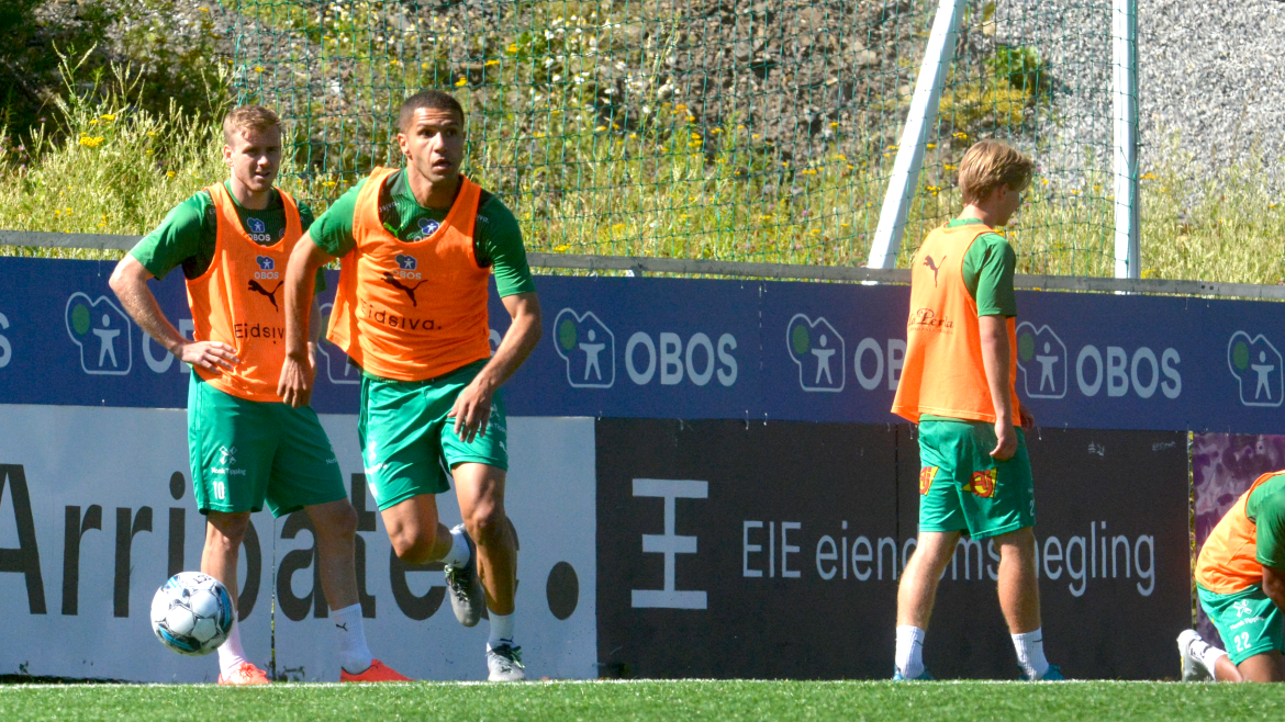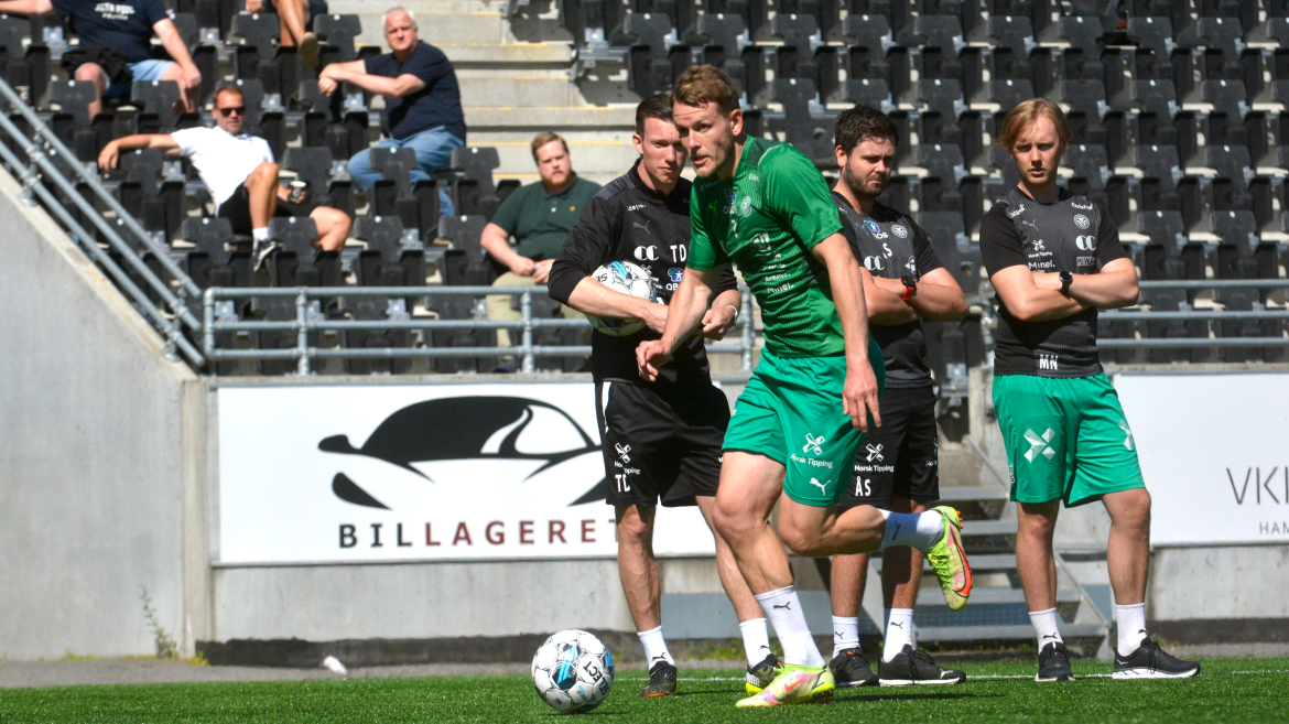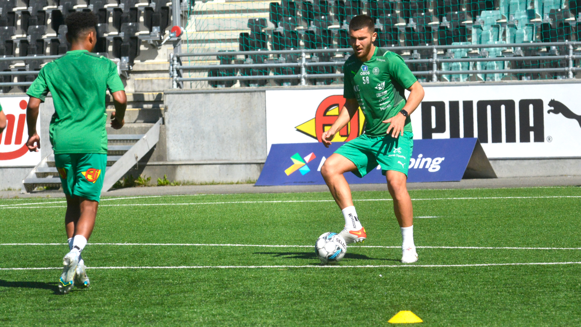 BILDEGALLERI: Gutta koste seg i solskinnet på Briskeby og la ned en god dose innsats på kunstgresset i dag. På lørdag klokken 18.00 står KBK på andre siden: Herrelaget