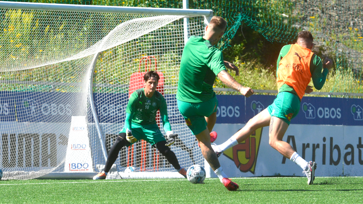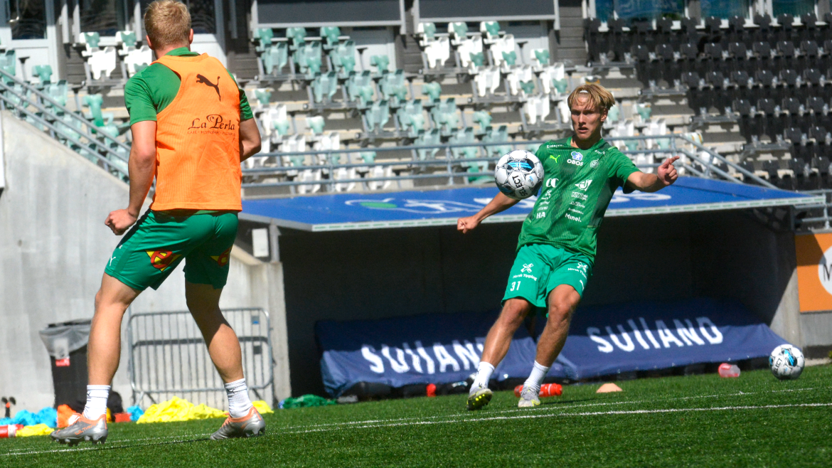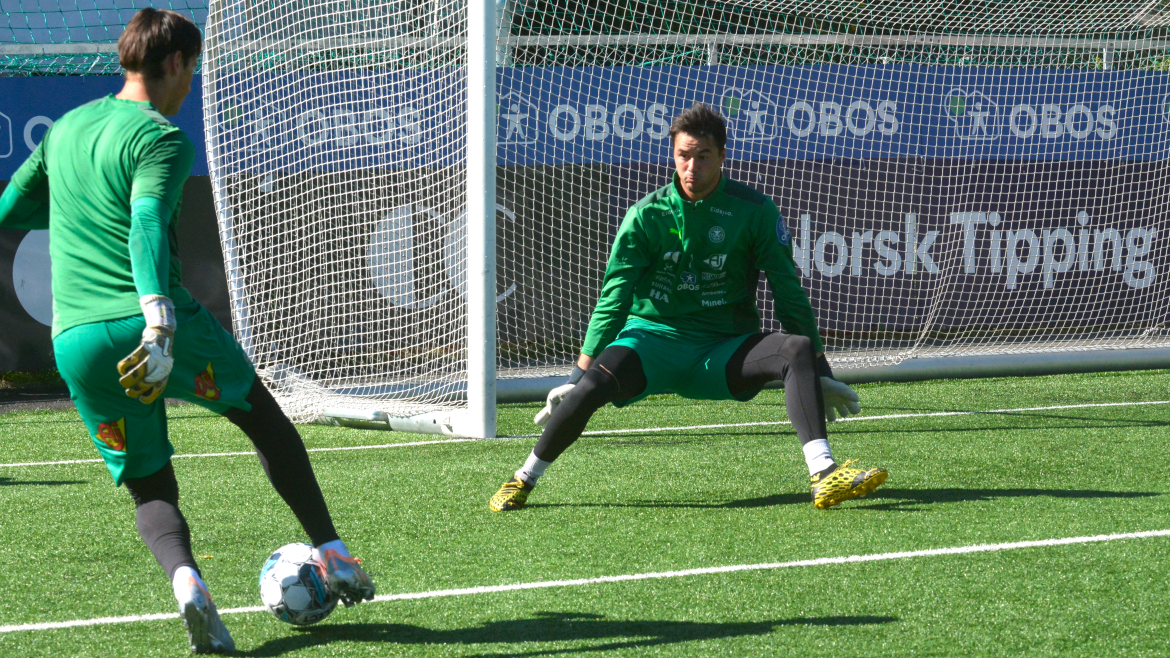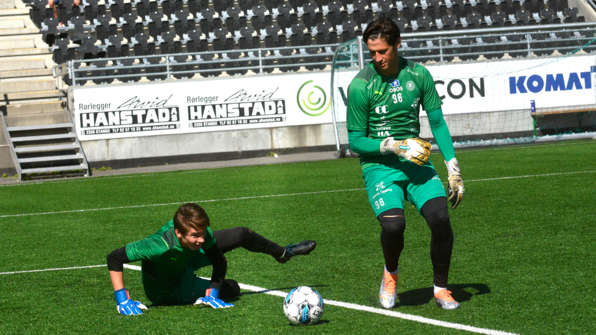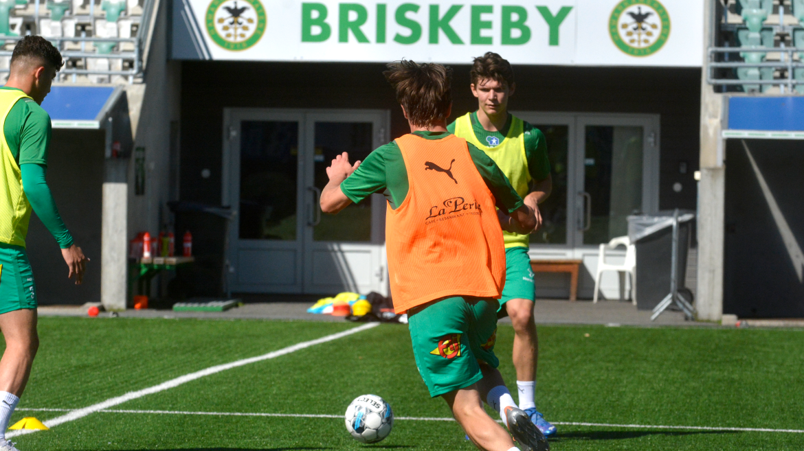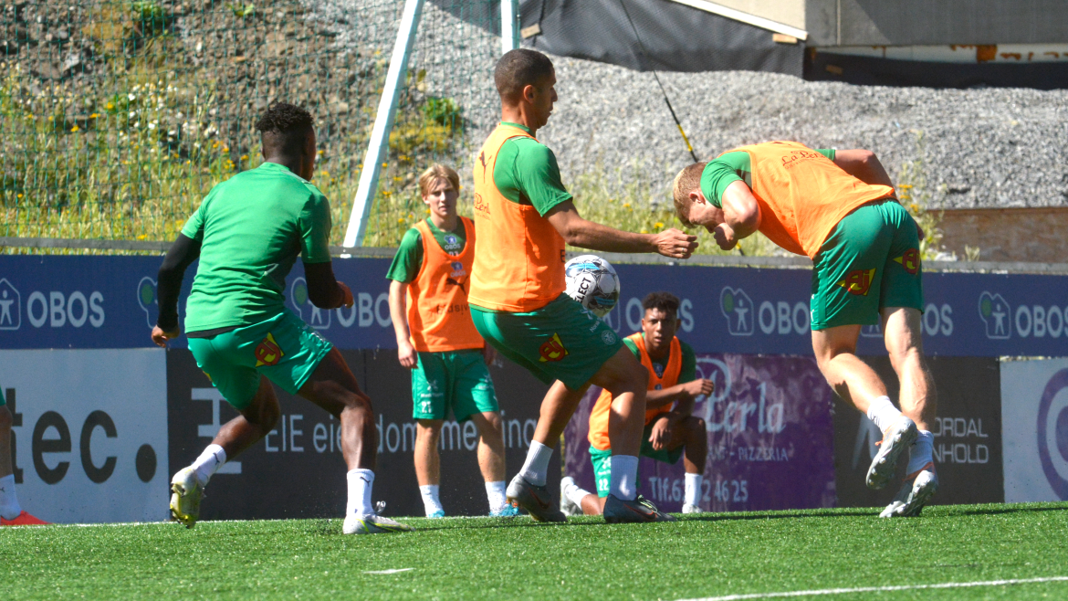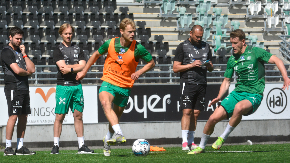 BILDEGALLERI: Gutta koste seg i solskinnet på Briskeby og la ned en god dose innsats på kunstgresset i dag. På lørdag klokken 18.00 står KBK på andre siden: Herrelaget