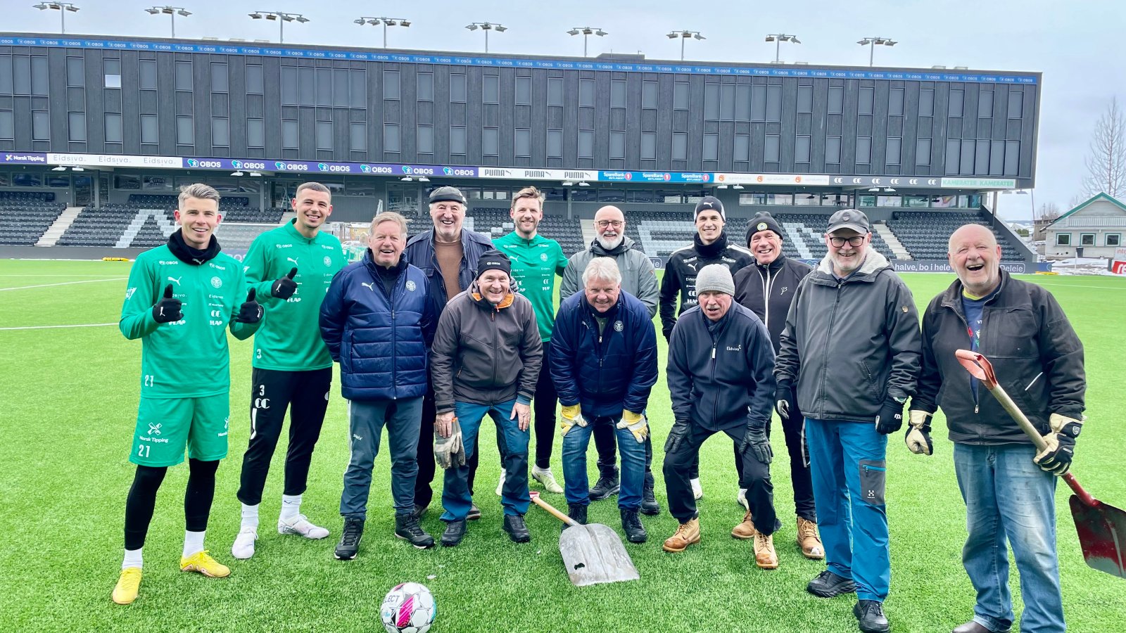 - Vi setter utrolig pris på alle som bidrar rundt klubben vår. Uten de frivillige og supportere hadde ikke fotballen vært den samme, sier kapteinen som gledelig fikk med seg Pål Kirkevold, Sam Rogers og Vidar Ari Jónsson på et "lagbilde" sammen med noen av de frivillige som holdt på lørdag formiddag.
