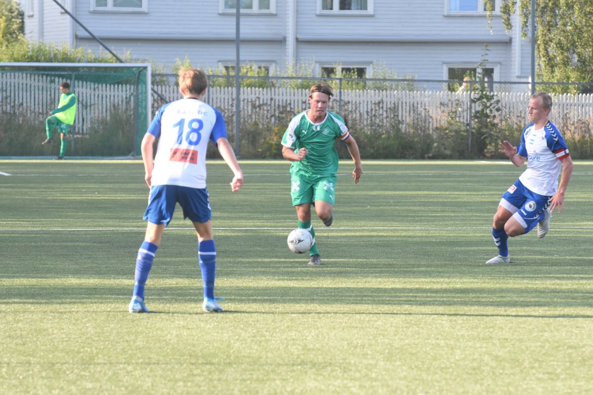 VIDEO/BILDEGALLERI: Her kommer nyervervelsen, Magnus Mikkelsen seg bort fra en av flere taklinger denne ettermiddagen. Nordstrand G19 ville mest og vant fortjent 2-0. Hør hva Chris Twiddy sa etter kampslutt: G19 Video Bildegalleri