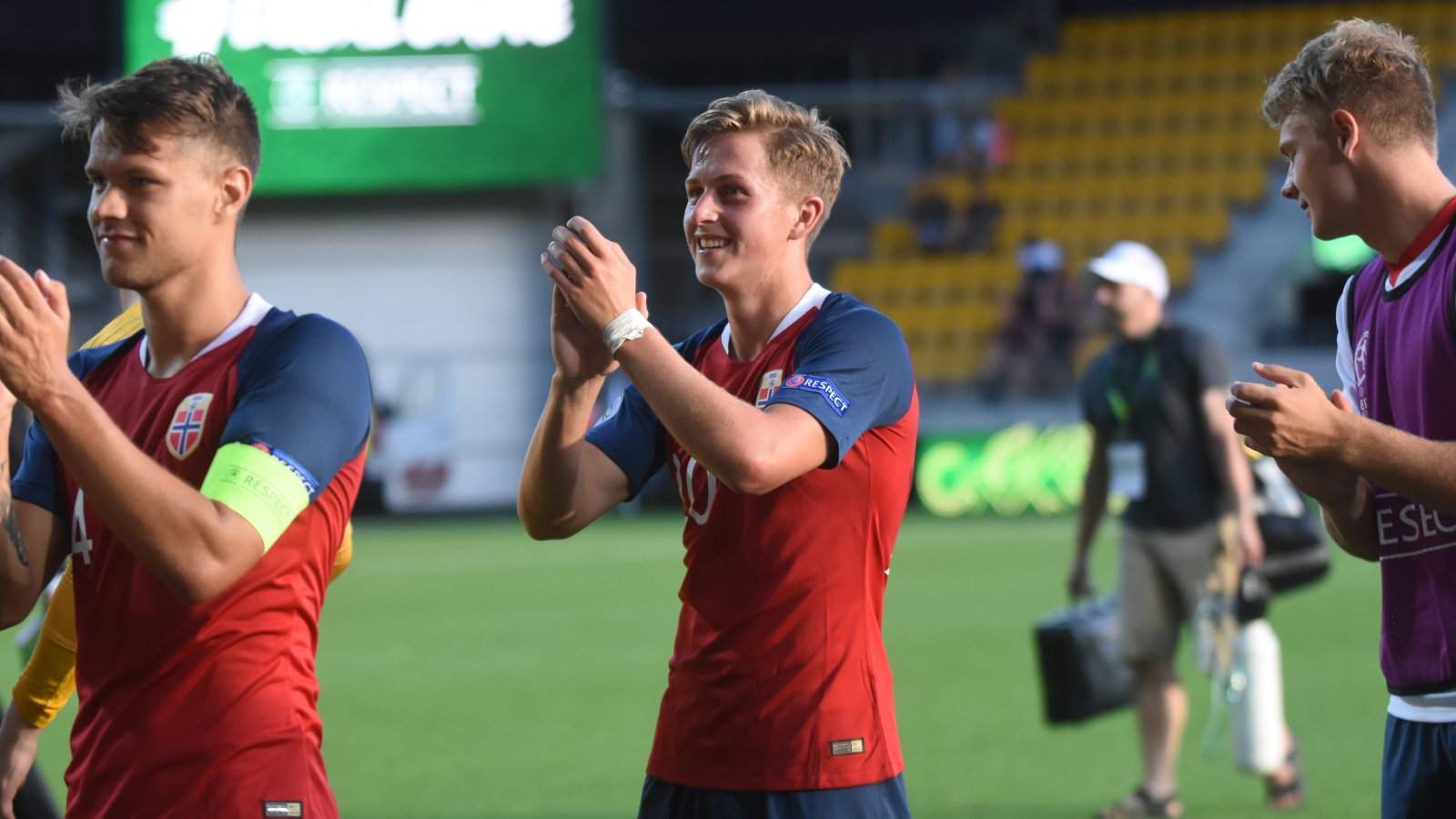 Norge U19 (4-4-2); Julian Faye Lund - Christian Dahle Borchgrevink, Leo Skiri Østigård, Ulrik Fredriksen, John Kitolano - Simen Bolkan Nordli, Hugo Vetlesen, Tobias Børkeeiet, Tobias Christensen - Erik Botheim, Erling Braut Håland