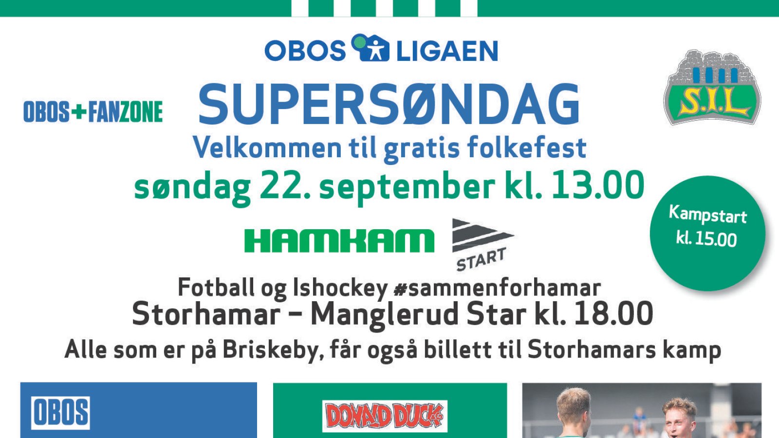 Storhamar Hockey - Manglerud Star ishockey kl.18.00. Alle som er på Briskeby kommer inn gratis på kampen ved fremvisning av billett.