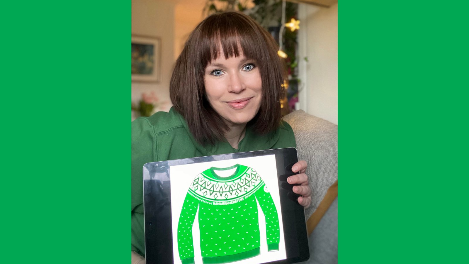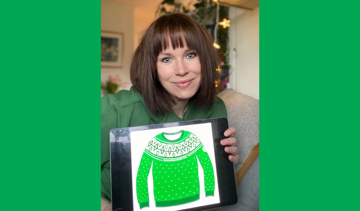 Gratulerer så mye til vinneren Ina Helen Herland som har designet både vinner-genseren og skjerfet.