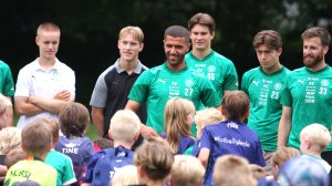 Nesten 130 barn bruker denne uka i Ankerskogen på HamKams fotballskole. På tirsdag fikk de besøk av HamKams a-lag: