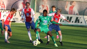Romeo Olola (bildet) scoret et flott mål og sendte gjestene i ledelsen tidlig i kampen. KFUM sitt juniorlag klarte å presse inn en scoring like før slutt og begge lagene reiste fra Ekebergsletta med 1 poeng hver: