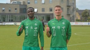 VIDEO/BILDEGALLERI: Onyeka Osemene (t.v) og Thomas Juel-Nielsen prøver seg på HamKam-trening denne uken. Hør hva Jakob Michelsen sier om det og denne ukens treningsleir: