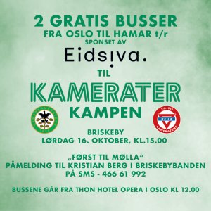 Eidisva sponser to busser for Kamerater fra Oslo til Hamar i forbindelse med Kamerater-kampen lørdag 16. oktober:
