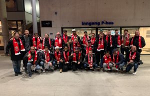 Her ser dere noen av de femti som ble med på sponsortur til landskampen mellom Norge og Montenegro på mandag.