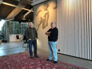 På bildet ser dere Terje Berg (t.v) og Per Gustavsen beundre HamKamhuset med vår gave som underlag: