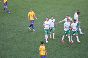 VIDEO: Jesper Taaje slo et flott innlegg til Moses Ebiye som sørget for utlikning rett før pause. Hør hva de to sa etter kampslutt: