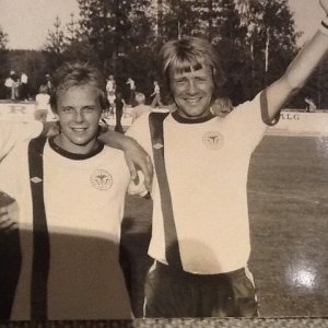 Dagens mann og til høyre på bildet (Bjørn Hval til venstre), var lagets kaptein i 1976 under Finn Salvesens ledelse. Den teknisk gode, midtbanespilleren jobbet seg til både fast plass på laget og den ærefulle oppgaven av å lede Kamma i kamp. Møtet med LSK foran 11.500 tilskuere på Briskeby er hans beste Kamma-minne: Knut Stensrud.