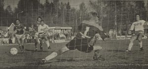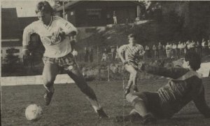 Noen spillere er trolig født med den udefinerbare egenskapen "målteft". Dagens mann var en slik spiller. Han skjøt sjelden hardt, men veldig ofte trillet han ballen i mål, hvor keeper - som mot KIL på bildet - er på vei i motsatt retning. En goalgetter og etterhvert naturlig kaptein på slutten av -80-tallet: Stein Kollshaugen.