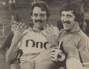 HamKam har møtt internasjonale storheter flere ganger gjennom historien. Det største var nok møtet med Manchester United. For dagens mann, til venstre på bildet, var nettopp denne kampen i 1977 karrierens Kamma-høydepunkt: Cato Strømberg