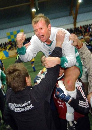 I 2003 skrev han seg inn i klubbens historiebøker. Med sine to scoringer sendte han HamKam til eliteserien og Hamars fotballfans til himmels. 2-1 borte mot Alta var nok til å sende Kamma opp på øverste nivå: Frode Birkeland
